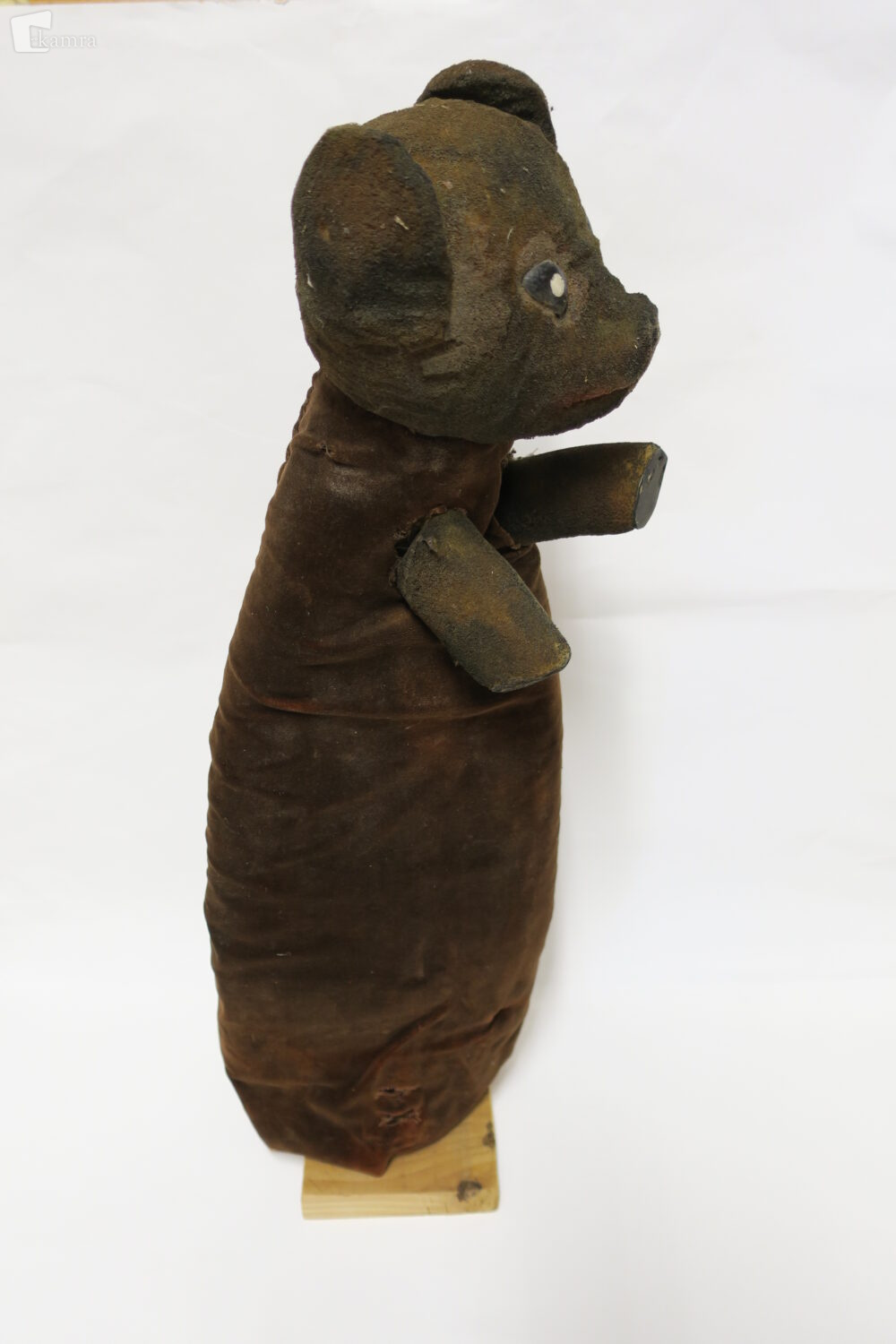 Ročna lutka z glavo iz poliuretanske pene, predstavlja prijaznega malega medveda. Ima dvoje črnih oči z belo piko na sredini, kratek smrček in in rdeče obarvano ustno odprtino. Ob strani ima majhna ušesa. Iz pene so tudi tačke, ki se ploščato končajo z leseno podlago. Glede na luknje v stiroporu se sklepa, da je imel tam kremplje. Telo je iz sloja pene in rjavega žameta, ki ima na koncu dve luknji in ni obrobljen.