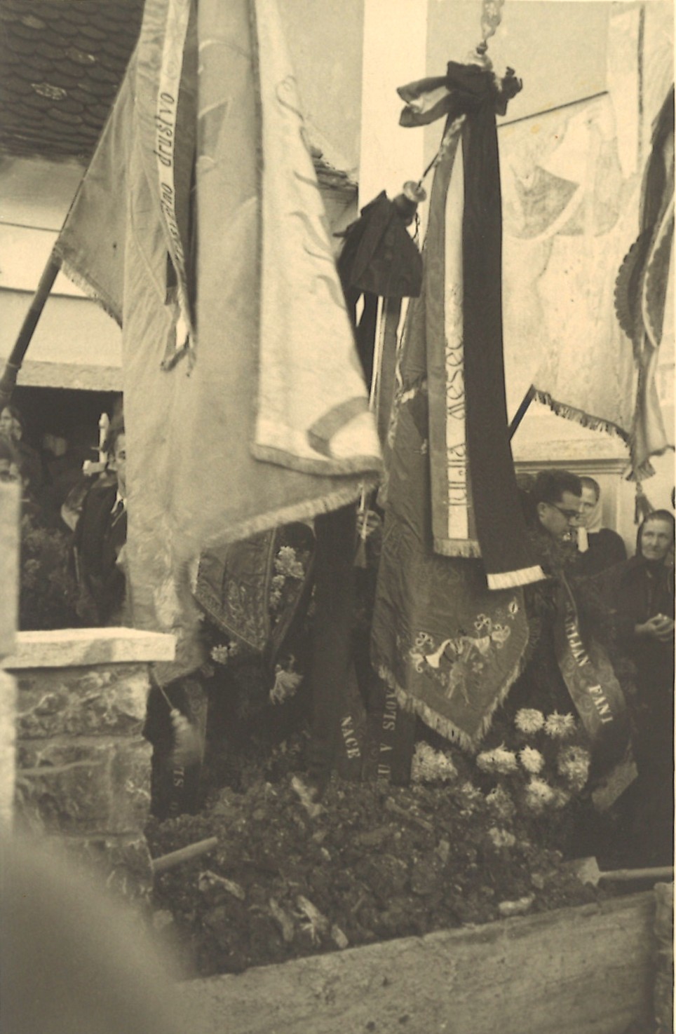 Pogreb dr. Janka Marolta na pokopališču v Verdu. Nad Maroltovo grobnico je na steni cerkve sv. Antona freska sv. Krištofa.