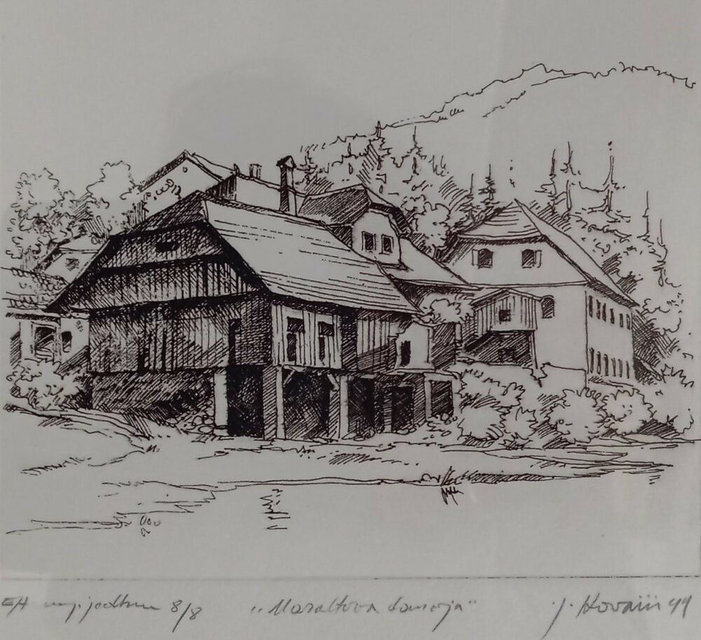 Maroltovina, jedkanica Multimedia element 13.10.2025 13:13 published by Cankarjeva knjižnica Vrhnika Privlačno domačijo je upodobilo kar nekaj umetnikov. Janez Kovačič je izbral pogled na domačijo s Krnico v ospredju in Ljubljanskim vrhom nad njo. Photo FacebookXPinterestLinkedIn Natisni Natisni brez slik