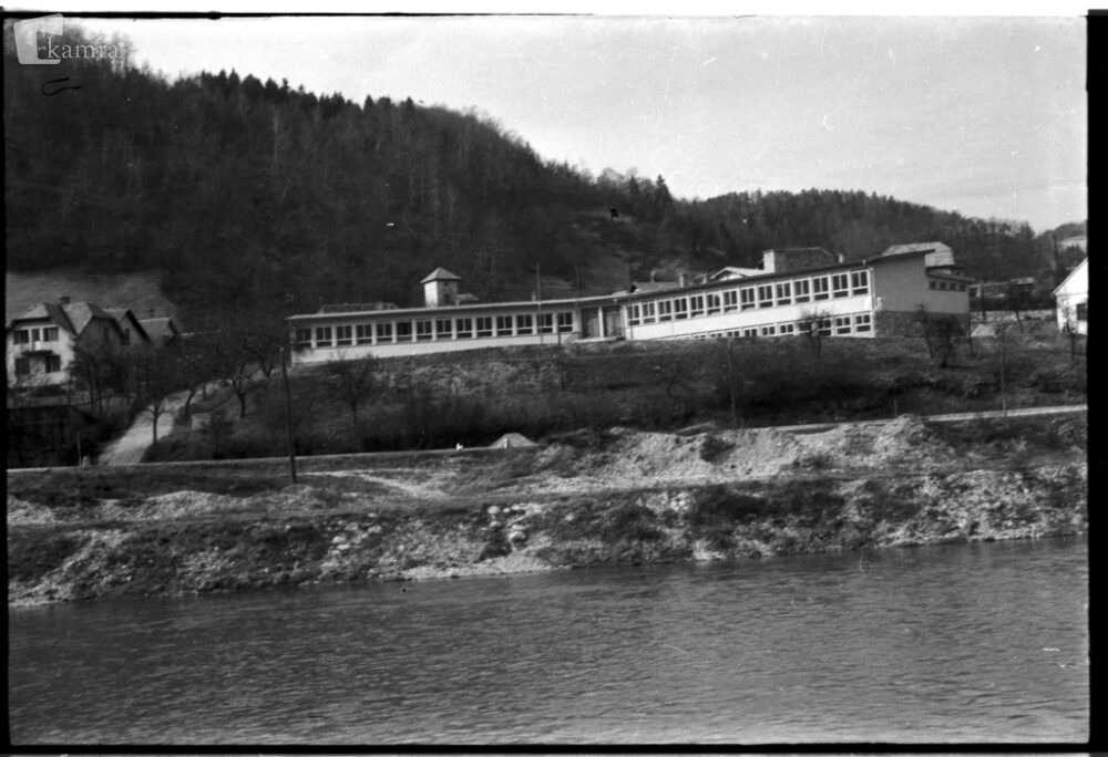 Novo zgrajeno poslopje OŠ Frana Kranjca na Polulah, jesen 1955