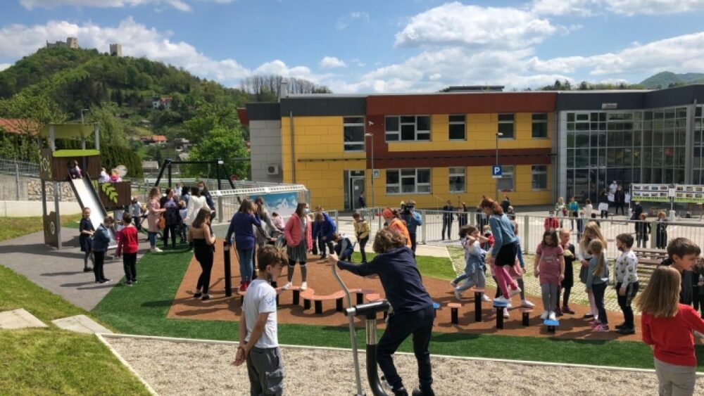 Prireditev ob odprtju novega otroškega igrišča z učilnico na prostem je, zaradi epidemije korona virusa, potekala ob upoštevanju vseh epidemioloških vladnih ukrepov Prireditve so se udeležili gostje z Mestne občine Celje, zbrane pa je nagovorila ravnateljica šole, gospa Danica Šalej. Župan Bojan Šrot je ob pomoči učencev šole ter otrok iz vrtca igrišče predal svojemu namenu. Igrišče je sicer bilo urejeno že v letu 2019, vendar ga otroci zaradi ukrepov za zajezitev epidemije niso mogli uporabljati. Mestna občina Celje je za 60 000 € odkupila sosednje zemljišče s hišo, ki je bilo v zasebni lasti. Julija 2017 so se začela prva gradbena dela. Zraslo je igrišče z različnimi igrali, poleg njega pa še učilnica na prostem. Ureditev je stala približno 100 000 €. Šola je s pomočjo donatorjev in z organizacijo dveh dobrodelnih koncertov v letih 2018 in 2019 zbrala 18 000 €, ostalo je občina financirala iz občinskega proračuna.