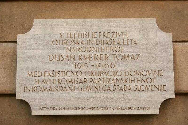 Spominska plošča na Šajblovi hiši je posvečena narodnemu heroju Dušanu Kvedru-Tomažu (1915-1966), ki je v tej hiši preživel otroška in dijaška leta. V njej je bilo do leta 1933 shajališče komunistov in skojevcev. Ploščo je leta 1975, ob 60-letnici Kvedrovega rojstva, postavila Zveza borcev Ptuj.