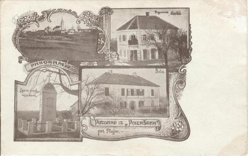 Pozdrav iz Polenšaka pri Ptuju Multimedia element 02.12.2014 12:03 published by Knjižnica Ivana Potrča Ptuj Na štiridelni razglednici Polenšaka vidimo v levem spodnjem kotu tudi spomenik padlim vojakom, ki je bil postavljen leta 1920, odstranjen pa leta 1937. Razglednica ni datirana, glede na motiv pa sodi v 20. oz. 30. leta 20. stoletja. Photo FacebookXPinterestLinkedIn Natisni Natisni brez slik