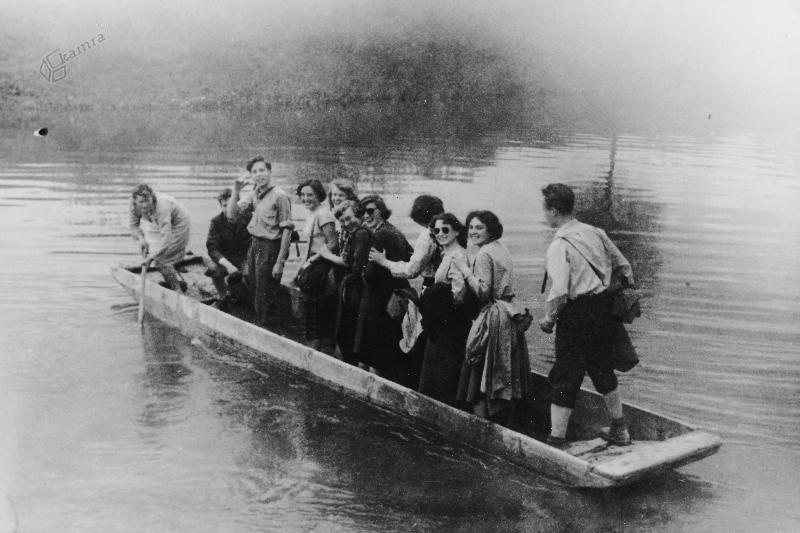 Čolni, narejeni iz enega debla in razširjeni z desko, so poznani tudi kot drevaki ali deblaki. Poleg večjih ladij so bili pomembno prevozno sredstvo za prevažanje ljudi in materiala po Ljubljanici. Fotografija prikazuje prečenje Ljubljanice pri Kaminu v Bevkah, ki je bil prehodna točka od prazgodovine dalje.