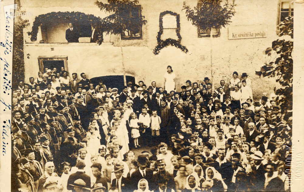 Postanek pri nekdanji gostilni Zajc v osrčju Gorjancev, na kateri je bila leta 1921 slavnostno odkrita spominska plošča slovenskemu pisatelju, ki je v svojih bajkah in povestih proslavil Gorjance, Podgorje in Belo krajino. Fotografijo je posnel Gvido Dolenc, Novo mesto.