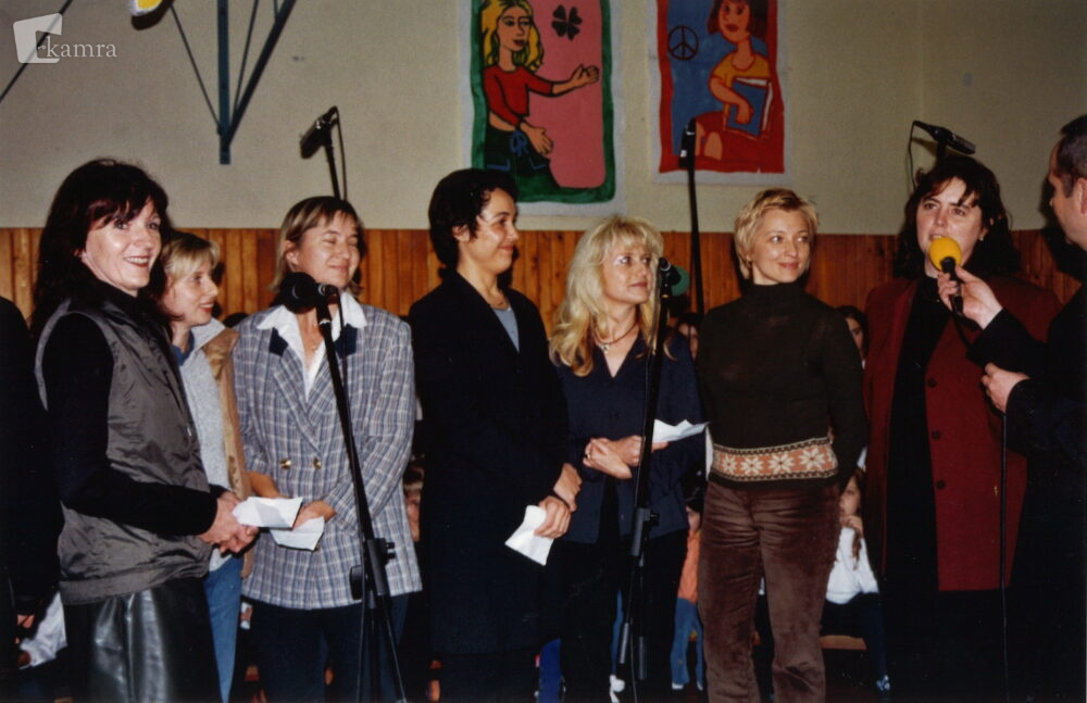 Od leve proti desni: Metka Irgolič, Darinka Čobec, Jana Draksler, Nataša Hartman, Lidija Hrušovar, Nevenka Ferara, Danica Šalej in dolgoletni voditelj ter urednik Veselega tobogana Milan Krapež.