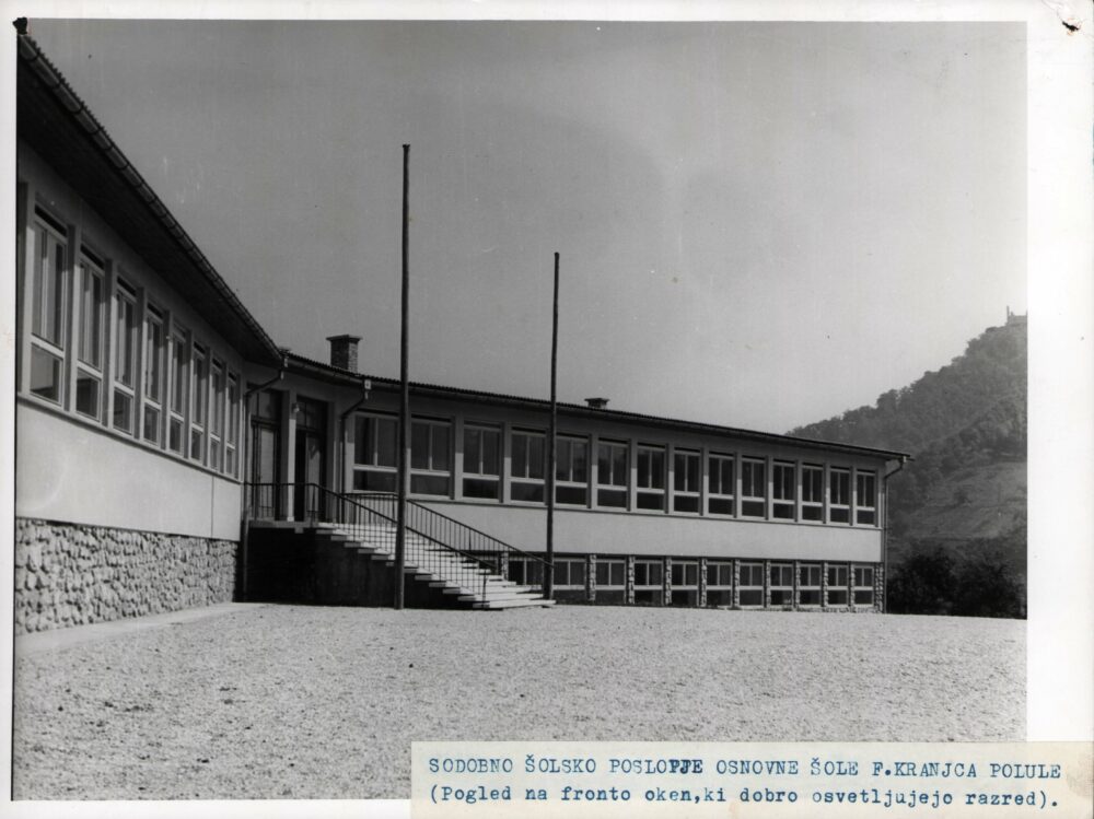 Šolo je zgradilo gradbeno podjetje Savingrad. Projekt je narisal arhitekt ing. Franc Ferrant iz Žalca. Šola je bila pritlična, svetla, zračna, brez stopnišč z izjemo stopnišča v podpritličje. Spredaj pred šolo je prvotno bila peščena ploščad, ki so jo kmalu zasadili člani hortikulturnega društva z gredicami in travo. Desno krilo šole je imelo še spodnjo etažo (podpritličje). Levemu krilu šole so projektanti podpritličje zasuli, ker so menili, da bo šola ostala štirirazrednica in da bodo starejši učenci od petega razreda naprej obiskovali nižjo gimnazijo v Celju. Šola je bila zgrajena po najmodernejšem »paviljonskem« dvokrilnem načrtu, ki so ga uvajale razvite države. Za vajeniško šolo je bila druga v Celju zgrajena po 2. svetovni vojni. Fronta velikih oken na jugovzhodni strani je omogočala svetle učilnice. Vir: Celjski tednik, letnik 8, št. 38, stran 1 in 5.