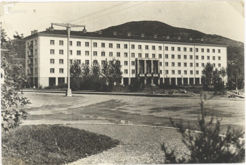 Poslopje tedanjega Okrajnega ljudskega odbora se je na razglednicah pojavljalo v številnih različicah. Na desni strani se je verjetno začela gradnja ulice ali morda celo nebotičnika. Fotograf je bil Đ. Griesbach. Založnik razglednice, odposlane marca 1964, je bil Putnik Zagreb.
