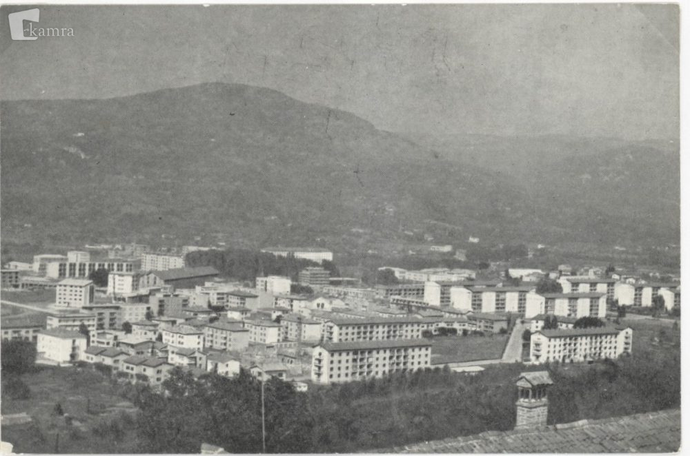 Na panoramski razglednici, slikani s Kostanjevice, je na levi strani siva streha opekarne, a že brez dimnika. V sredini razglednice, desno od opekarne, je zgrajenih nekaj nadstropij nebotičnika. Razglednica je bila ponatisnjena v izdaji TD Nova Gorica.