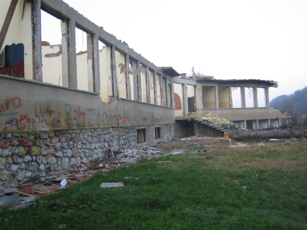 Rušenje obeh kril stare šole, jeseni 2006. Stara šola je zdržala 51 let. V šolskem letu 2005/2006 je zaradi pomanjkanja prostora bila učilnica za gospodinjstvo preurejena v učilnico za redni pouk. Prostor je bil premajhen, neustrezno razsvetljen in predvsem hladen, ker se je nahajal v podpritličju levega krila šole. Tam so se nahajali tudi kar trije oddelki razredne stopnje. Glavni vzrok, da so se odločili za novo šolo je bila dotrajanost, preutesnjenost in nezmožnost izvajanja programa devetletne osnovne šole. Stara šola je dobesedno »pokala po šivih«. (Ivanka Marič, letni delovni načrt za šolsko leto 2005/06)