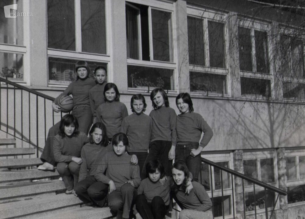 Stojijo (od leve proti desni): Breda Pušnik (z žogo v roki), Nuška Čakš, Marika Vrečer, Milena Pukšič, Mojca Ojstršek, Mojca Stoklas.