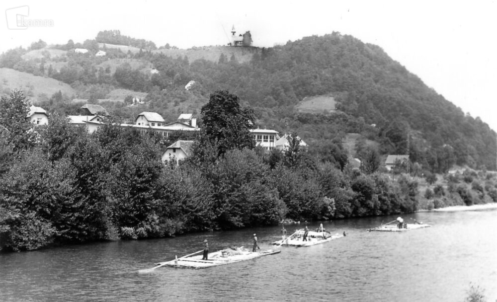 Ignac Čater je fotografiral splavarje na Savinji pri Polulah. Splavarji (»flosarji«), ki so splavljali les iz Zgornje Savinjske doline, so se prvič ustavili prav pri Polulah, kjer so po dva splava združili v enega in nadaljevali pot proti Zidani Mostu. V ozadju je naselje Polule in Miklavški hrib s cerkvijo sv. Miklavža. V ospredju levo stoji hiša, kjer danes živi družina Berger (potomci Frana Krajnca). Pred desnim krilom šole je vidna nekdanja Krajnčeva hiša, kasneje prenovljena za potrebe prvega vrtca na Polulah. Foto: Ignac Čater.