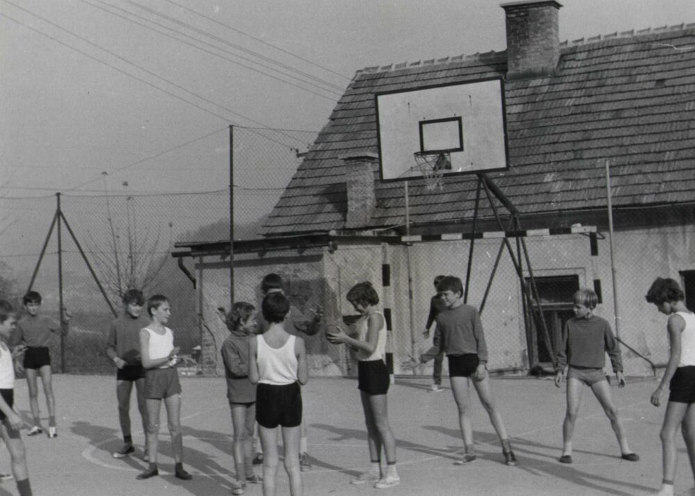 Fanta v temnih majicah skrajno levo sta brata dvojčka Branko in Ranko Grbič. Peti z leve v temni majici s profila je zelo verjetno Tone Tiselj, svetlolasi fant v temni majici na desni je Bojan Bevc. (Zdenko Podlesnik, ustni vir)