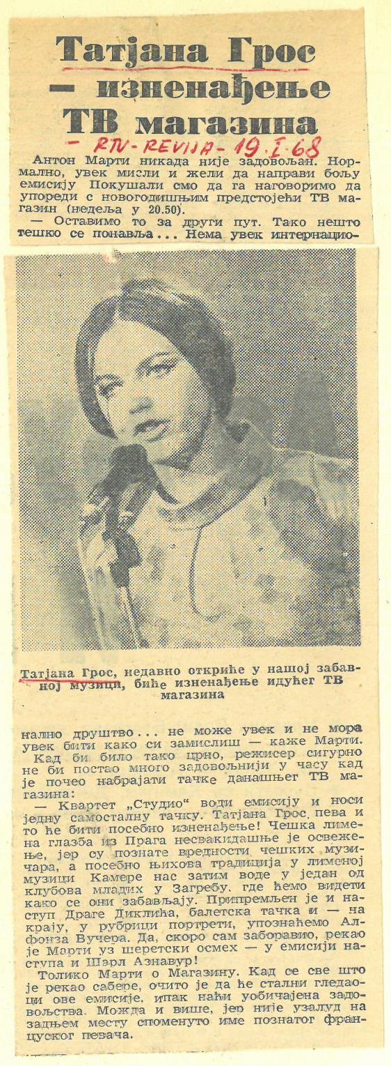 Tatjana Gros-Članki-26 Multimedia element 24.09.2021 13:28 published by Knjižnica Pavla Golie Trebnje Članek o Tatjani Gros, RTV revija, 19. 1. 1968. Photo FacebookXPinterestLinkedIn Natisni Natisni brez slik