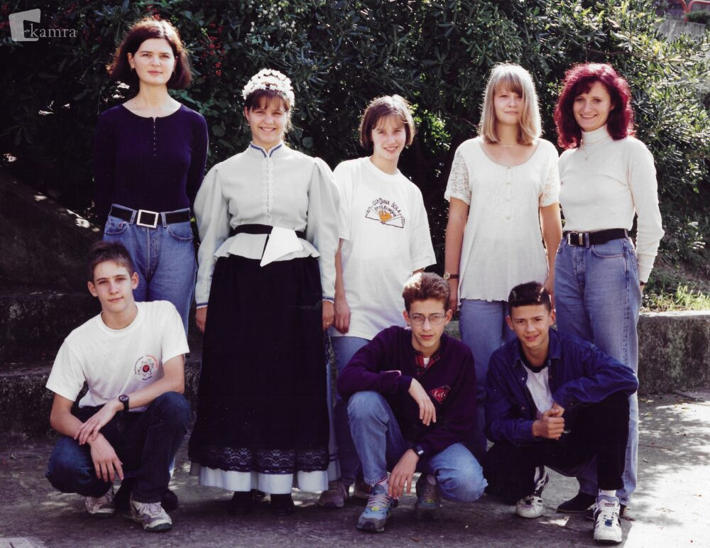 Udeleženci mednarodnega Unesco tabora v Piranu Multimedia element 20.11.2025 12:46 published by Osrednja knjižnica Celje Stojijo od leve proti desni: ga. Dragica Milojevič, Sara Kos, Vita Medvešek, Nataša Horjak, ga. Milena Petauer. Čepijo od leve proti desni: Mitja ali Matija Melanšek (ni bil učenec naše šole), Sašo Štampe, Matjaž Brezigar. Sara Kos, ustni vir. Photo FacebookXPinterestLinkedIn Natisni Natisni brez slik