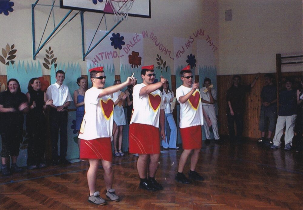 Od leve proti desni: Denis Peperko Zupančič, Sašo Farčnik in Jure Podergajs. (Mia Kočevar por. Zagoričnik, ustni vir)