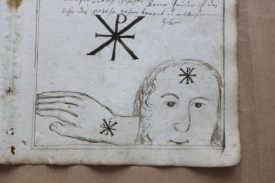 Rokopisna knjiga med restavratorskimi posegi: list pred čiščenjem 29.12.2023 Koroška osrednja knjižnica dr. Franca Sušnika 6 ogledov