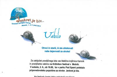 Križnikov pravljični festival: Program 2012 26.10.2018 Knjižnica Franceta Balantiča Kamnik 77 ogledov