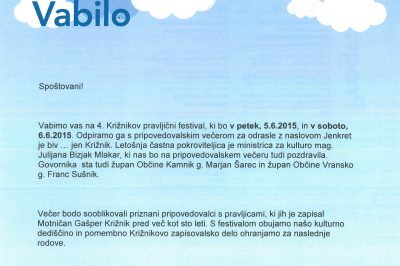 Križnikov pravljični festival: Program 2015 26.10.2018 Knjižnica Franceta Balantiča Kamnik 54 ogledov