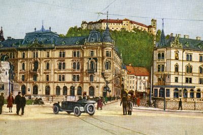 Pogled z Marijinega trga na Stritarjevo ulico in ljubljanski grad 25.01.2018 Mestna knjižnica Ljubljana 361 ogledov