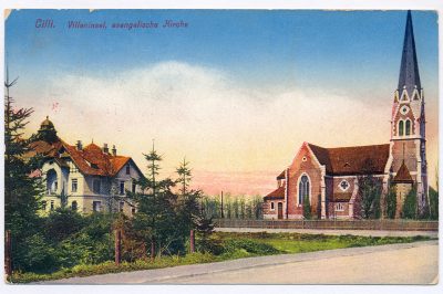 Razglednica Celje - Cilli Villeninsel, evangelische Kirche 12.06.2017 Osrednja knjižnica Celje 339 ogledov