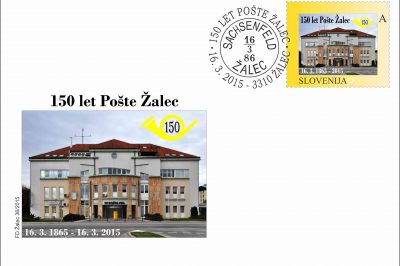 Priložnostna poštna kuverta ob 150 letnici Pošte Žalec 16.01.2017 Medobčinska splošna knjižnica Žalec 81 ogledov