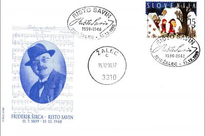 Priložnostna poštna kuverta z žigom ob obletnici skladatelja Rista Savina 16.01.2017 Medobčinska splošna knjižnica Žalec 44 ogledov