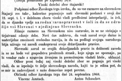 Objava v Slovenskem narodu, 29. septembra 1868 16.01.2017 Medobčinska splošna knjižnica Žalec 82 ogledov