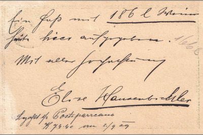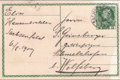 Dopisnica, poslana 6. 8. 1909, zadnja stran 16.01.2017 Medobčinska splošna knjižnica Žalec 57 ogledov