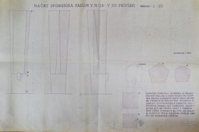 Načrt za spomenik kurirjem v Zgornji Pristavi iz leta 1964 05.01.2017 Knjižnica Ivana Potrča Ptuj 113 ogledov