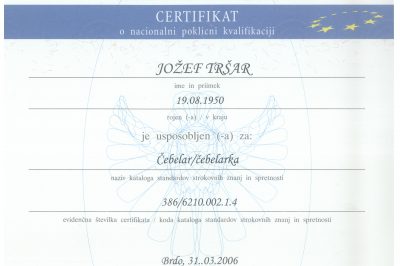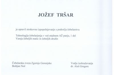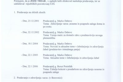 Potrdilo o opravljenem strokovnem izpopolnjevanju s področja čebelarstva 30.12.2016 Mestna knjižnica Ljubljana 146 ogledov