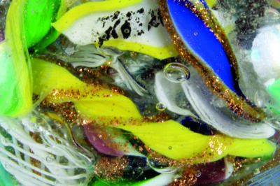 Koščki zlatorjavega bleščečega avanturinskega stekla v umešanem muranskem obtežilniku 15.12.2025 Osrednja knjižnica Celje 0 ogledov