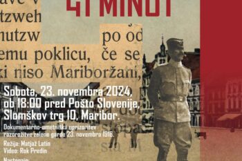 Vljudno vas vabimo na dogodek 47 minut, Maistrova akcija za Maribor, dokumentarno-umetniško uprizoritev razorožitve zelene garde 23. novembra 1918, ki bo v soboto, 23. novembra 2024, ob 18. uri pred Pošto Slovenije na Slomškovem trgu v Mariboru.