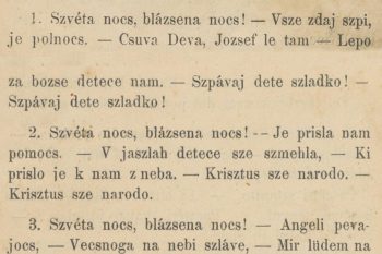 Pesem Sveta noč, blažena noč je bila prvič zapeta na sveti večer leta 1818 v cerkvi sv. Nikolaja v avstrijskem Oberndorfu, severno od Salzburga. Danes se poje v 300 jezikih in dialektih, tudi v prekmurskem.