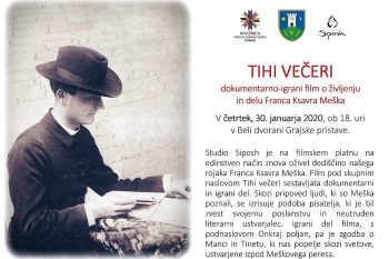 Knjižnica Franca Ksavra Meška Ormož vas v četrtek, 30. januarja 2020, ob 17. uri vabi v Belo dvorano Grajske pristave na projekcijo filma TIHI VEČERI, dokumentarno-igranega filma o življenju in delu Franca Ksavra Meška.