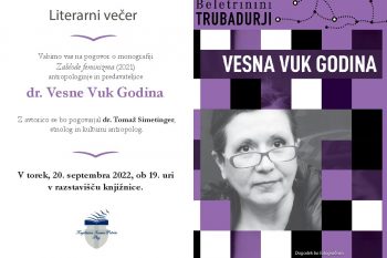 Knjižnica Ivana Potrča Ptuj vabi na literarni večer z antropologinjo in predavateljico dr. Vesno Vuk Godina. V pogovoru z dr. Tomažem Simetingerjem, etnologom in kulturnim antropologom, nam bo predstavila svojo novo monografijo Zablode feminizma (2021).