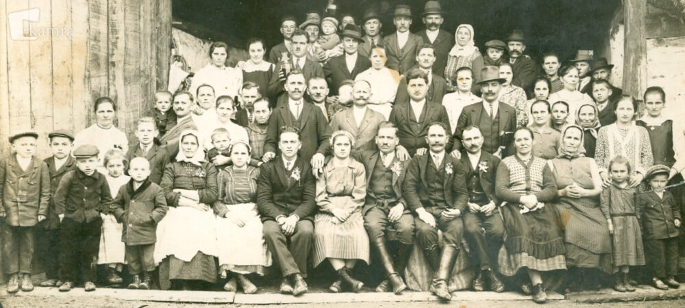 V prvi vrsti skrajno desno stoji 4 – letni Biro Jožef (1926-2021), za njim stoji mati Terezija (1900-1984), oče Jožef (1894-1975) pa stoji v drugi vrsti (6. z desne) – markanti gospod z brki in klobukom