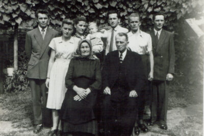 Za »ohcet« mojega nonota in none, Alojza Bevčiča in Avguste Novak, so na domu mladega ženina iz »Vencetove hiše« združile moči same »fine pekarice,« kot se je reklo gospodinjam, ki jim je šla peka od rok. Ohcet je bil 2. februarja 1962, tik pred korizmom, časom med pepelnico in Veliko nočjo, ko se ne sme ženiti. Pecivo in druge dobrote so pripravljale (od leve) ženinova sestra Ivanka (poročena Krebelj), Pavla Vičič (rojena Gombač) iz Harij, Slava Bevčič- Lovrječkova in druga nonotova sestra Lucija (por. Gombač). To so bili še časi, ko se je še vse opravilo doma, od ohceti, rojstva do smrti. Slava Lovrjčkova je kaj rada priskočila na pomoč »po vasi«. Pavlina Vičič- Rupčova iz Harij, pa je bila znana »pekarica« daleč naokrog. Pekla je za veliko porok, pa tudi drugih priložnostih, kot denimo za sedmine, ki so jih tudi takrat še pripravljali na domu. S peko je preživljala svojo družino. Torta na fotografiji je verjetno njeno delo, privoščili pa so si jo le za poroko. Vse štiri gospodinje imajo »fine fjrtohe« brez naramnic pripete z bucko ali pa zašivane.
