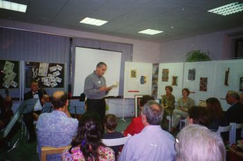 Predstavitev priložnostnih znamk iz serije Umetnost v Kosovelovi knjižnici Sežana.