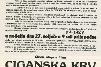 Leta 1927 se je poskusil v glavni moški vlogi v filmu Ciganska kri (Ciganska krv), vendar ga zaradi pomanjkanja denarja niso končali. Posneti material, ki ga hrani Slovenska kinoteka, se je vseeno ohranil.
