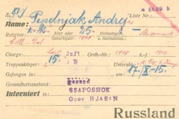 Avstroogrski vojaki v ujetništvu Digitális gyűjtemény 10.11.2011 14:33 közzétette Zgodovinski arhiv Celje Stran - Előző Következő Mnogi Slovenci, ki so se borili v avstroogrski armadi, so prišli v rusko vojno ujetništvo. Olvasás tovább Vojnim ujetnikom so oborožene sile države, ki jih je zadrževala vujetništvu, dovolile, da so se javili svojcem, jim posredovali svojnaslov in jim na kratko opisali svoje stanje. Fotó galéria FacebookXPinterestLinkedIn Natisni Natisni brez slik