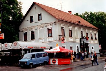 Orkestri iz Vevč, Metlike, Zagorja (Svea), nemškega Lauingena in Trebnjega so v nedeljo, 23. 6. 1996, potem ko so na Golievem trgu v čast domače godbe, ki praznuje 70-letnico, izvedli krajši koncert in si izmenjali darila, v paradnem koraku za trebanjskimi mažoretkami krenili do drugega jubilanta v bližini – 100-letne Pavlinove gostilne. Godbeniki so tod ustvarili posebej praznično razpoloženje, ko je ob koncu slovesnosti okrog 200 godbenikov pod taktirko Igorja Teršarja še skupaj zaigralo nekaj skladb. Slovesnost pa so pričeli domačini s fanfarami (na posnetku), potem ko sta se gostilničar Janez Pavlin in župan Ciril Metod Pungartnik pripeljala pred okrašeno gostilno.