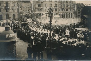 »V sokolskih dneh smo. Ljubljana že izpreminja svoje običajno lice. Po mestu je od trenutka do trenutka opažati živahnejše valovanje ljudstva. Vse je veselo in praznično razpoloženo. Pojavile so se že prve rdeče srajce po ulicah, več sto jih je že.