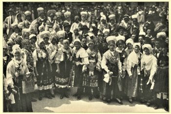 Živahni temperament naših južnih bratov daje še prav poseben izraz mestu. Promet je pomnožen, po ulicah švigajo neprestano avtomobili in izvoščki. Tudi postreščki so že čez glavo zaposleni. Vsem se obeta izredno bogat zaslužek. Včeraj došli gosti so si ogledovali mesto in se divili zlasti krasni okolici. Starodavni ljubljanski grad je bil ves dan poln tujcev. Mnogi so se odpeljali tudi na Gorenjsko. Posebno živahno pa je na trgu pred kolodvorom, kjer vihrajo v polkrogu zastave vseh zavezniških držav in pa na kolodvoru samem. Peron je že ovit z zelenjem in okrašen z zastavicami. Z vsakim vlakom prihajajo gosti in že tudi številni civilni posetniki [t. j. obiskovalci]. Starešinstvo JSS [Jugoslovenskega sokolskega saveza, op. a.] in člani stanovanjskega odseka so ves dan na nogah.« (Jutro, 11. 8. 1922)