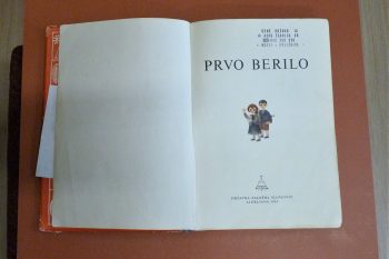 Cenetova zbirka zvezkov in pripomočkov, ki so jih nekoč uporabljali učenci v šoli.