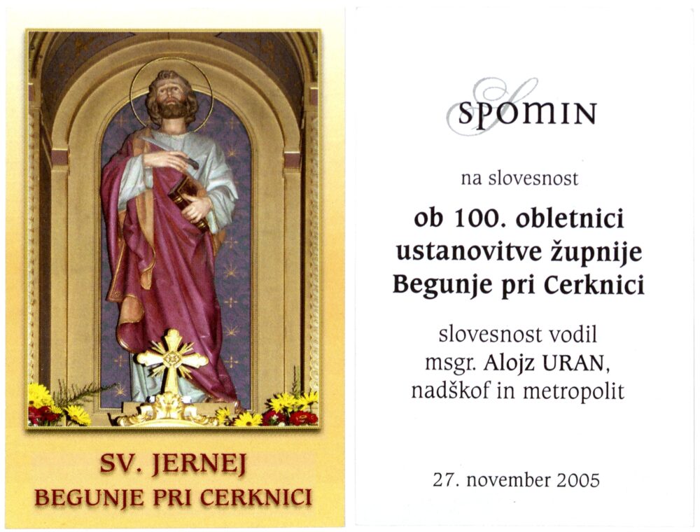 100-letnica ustanovitve župnije Begunje pri Cerknici, 2005 Multimédiás elem 16.10.2025 22:06 közzétette Knjižnica Jožeta Udoviča Cerknica 100-letnica ustanovitve župnije Begunje pri Cerknici, 27. november 2005. Sv. Jernej, apostol, oltarni kip cerkve sv. Jerneja v Begunjah pri Cerknici. Mere: 7,2 x 10,9 cm. Zbirka družine Kranjec iz Topola pri Begunjah. Slika FacebookXPinterestLinkedIn Natisni Natisni brez slik