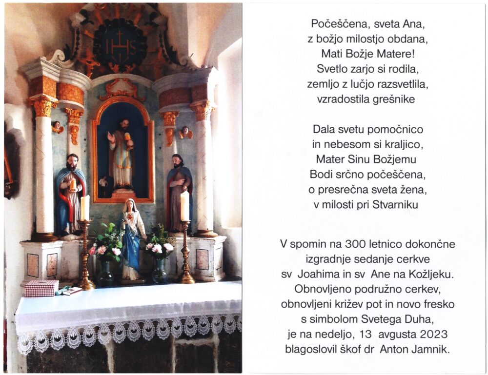 Blagoslovitev podružnične cerkve sv. Joahima in sv. Ane na Kožljeku, 2023 Multimédiás elem 16.10.2025 22:06 közzétette Knjižnica Jožeta Udoviča Cerknica Blagoslovitev podružnične cerkve sv. Joahima in sv. Ane na Kožljeku ob 300-letnici njene dokončne izgradnje, 13. avgust 2023. Oltar cerkve sv. Joahima in sv. Ane na Kožljeku. Mere: 8,9 x 14 cm. Zbirka KJUC. Slika FacebookXPinterestLinkedIn Natisni Natisni brez slik