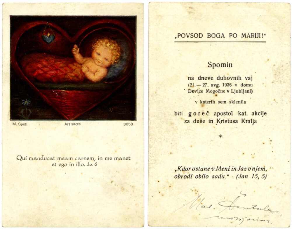 Duhovne vaje v Domu Device Mogočne v Ljubljani, 1936 Multimédiás elem 16.10.2025 22:06 közzétette Knjižnica Jožeta Udoviča Cerknica Duhovne vaje v Domu Device Mogočne v Ljubljani, Lichtenthurnov zavod (Marijanišče), 21.–27. avgust 1936. Jezus v jaslih (M. Spötl). München: Ars Sacra Verlag. Mere: 7 x 11 cm. Zbirka Joži Mele iz Cerknice. Slika FacebookXPinterestLinkedIn Natisni Natisni brez slik