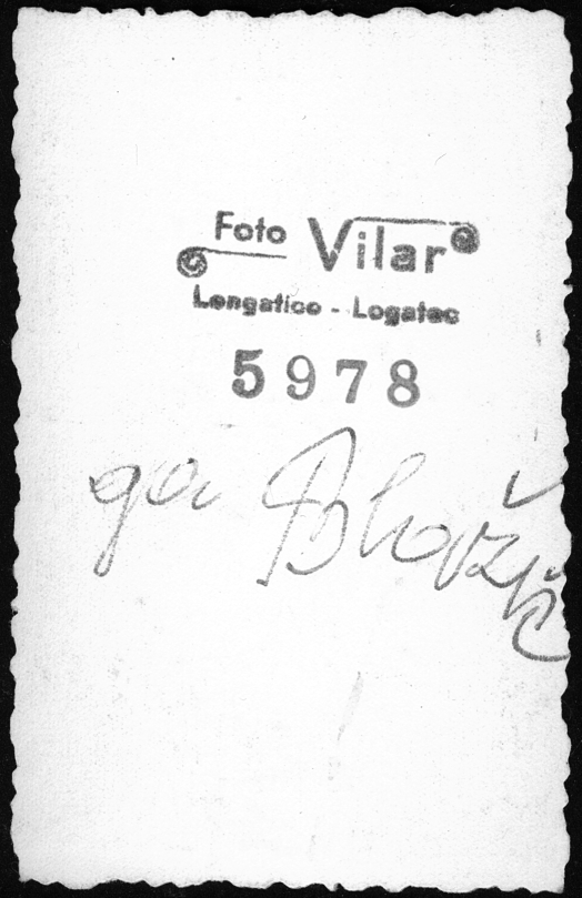 Ga. Blažič Multimédiás elem 11.11.2025 11:58 közzétette Knjižnica Logatec V zapuščini družine Vilar je tudi obsežen del portretov, ki so nastali v Foto studiu Vilar. Ker niso datirani, ni mogoče razločiti, katere je napravil Vilar st., katere pa Vilar ml. (Tajči). Slika Hrbtna stran FacebookXPinterestLinkedIn Natisni Natisni brez slik