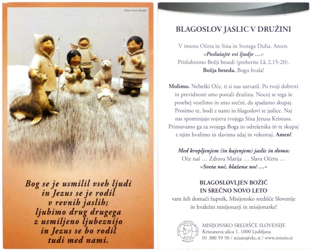 Jezusovo rojstvo Multimédiás elem 16.10.2025 22:05 közzétette Knjižnica Jožeta Udoviča Cerknica Jezusovo rojstvo, jaslice Inuiti iz Kanade. Blagoslov jaslic v družini. Ljubljana: Misijonsko središče Slovenije. Mere: 8 x 13 cm. Zbirka Joži Mele iz Cerknice. Slika FacebookXPinterestLinkedIn Natisni Natisni brez slik